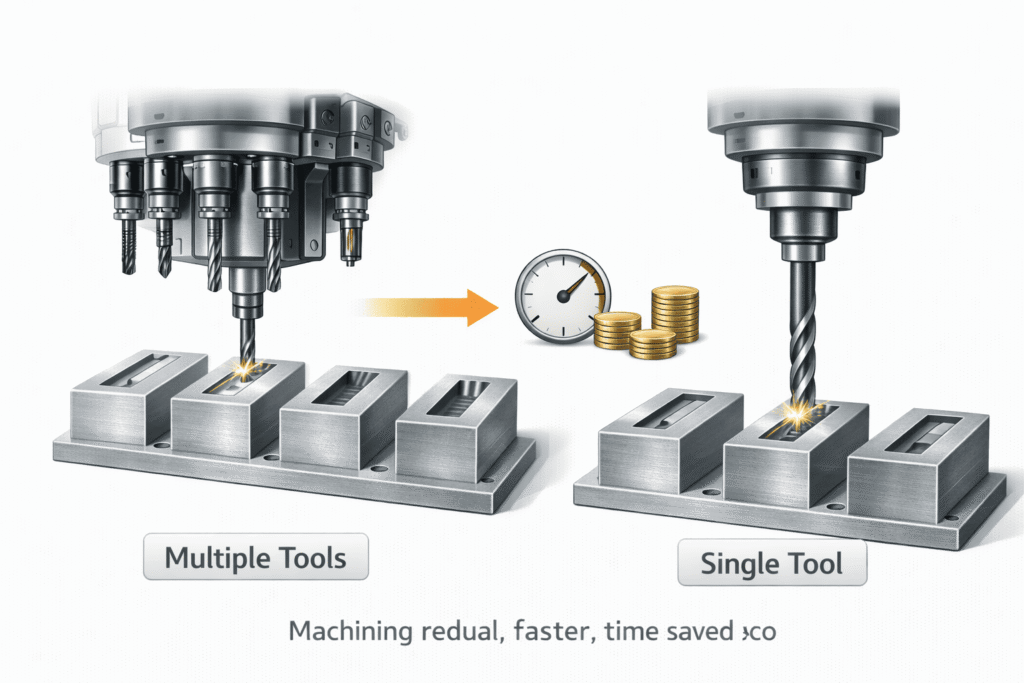 Each tool change increases machining time and complexity.